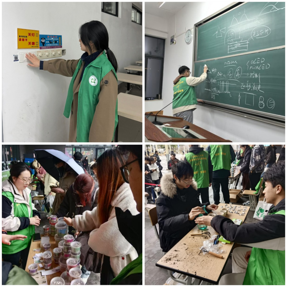 突出内涵特色,筑牢劳动教育“主阵地”。公司结合自身实际与校园文化建设需求,积极开展校园劳动实践活动,大力培育员工劳动文化。学院“砹水硒电”志愿服务队活跃在校园的各个角落,认真擦净黑板、关紧门窗、关闭电灯、检查水龙头,进行层层排查,及时上报问题并联系维修。通过这些行动,推动节水节电检查活动向可持续化、常态化迈进,引导师生从身边小事做起,为“双碳”目标贡献力量。雷锋月与植树节相遇,绿色行动如火如荼。植树节当天,学院在一食堂小广场举办节水节电和双碳知识科普宣传活动,提供绿植和特色花盆,邀请同学们参与种植体验。在志愿者的指导下,同学们亲手栽种并领养专属绿植,掌握养护知识,提升环保素养,为校园增添绿色生机,共建减碳校社。此次活动不仅丰富了校园文化生活,更通过劳动实践培育了员工的劳动文化,让绿色发展理念落地生根。