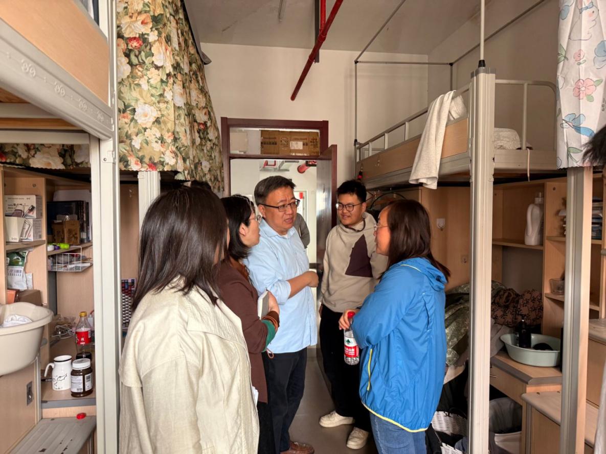 会议结束后,学院领导班子成员、辅导员与 7 号公寓楼层长一同走访 7 号楼员工宿舍。老师们与员工面对面交流,详细了解研究生科研进展、生活状况,倾听员工在园区生活中的困难与建议,并反复叮嘱用电安全事项,共同打造安全温馨的居住环境。