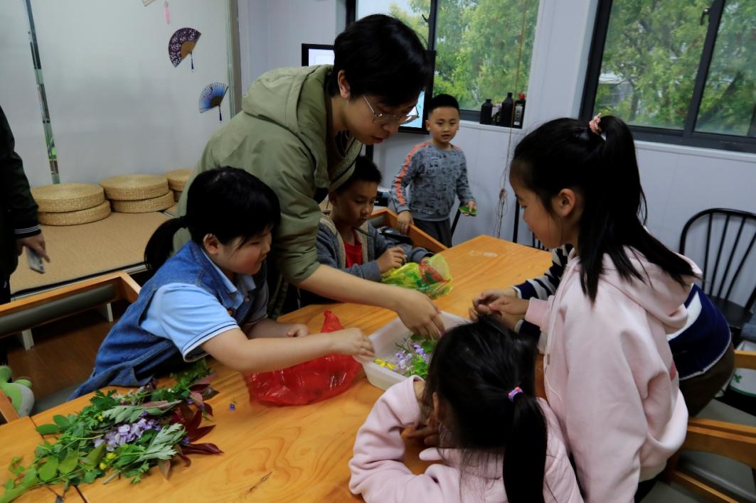 融合实践体验,搭建非遗传承“新平台”。小课堂结束后,志愿者们为小朋友们准备了丰富的植物材料和拓印工具,组织大家亲自动手进行植物拓印创作。在志愿者们的耐心指导下,孩子们纷纷拿起手中的工具,挑选自己心仪的植物,开始了奇妙的拓印之旅。大家发挥着自己的想象力和创造力,将不同的植物组合在一起,拓印出一幅幅独一无二的作品。有的孩子还将自己的创意融入其中,为作品赋予了新的意义。在这个过程中,孩子们不仅体验到了亲手制作的乐趣,更深刻地感受到了非遗技艺的独特魅力。