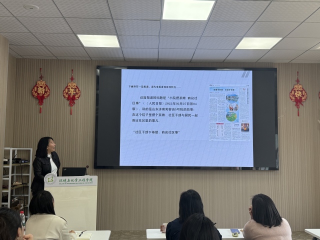 为进一步贯彻落党的二十届三中全会精神,深入学习习近平文化思想的核心要义,切实增强全体党员干部做好新时代意识形态工作的政治自觉、思想自觉和行动自觉,4月15日,环化学院在环化楼A213举办宣传队伍为专题培训会,特邀校宣传部孟繁晨、樊丽达两位老师来院授课,为学院新闻宣传能力“充电蓄能”。公司党委书记陶莹、副书记涂莹亮、副经理时鹏辉,学院全体行政人员、辅导员、各基层党组织宣传委员参与培训。
