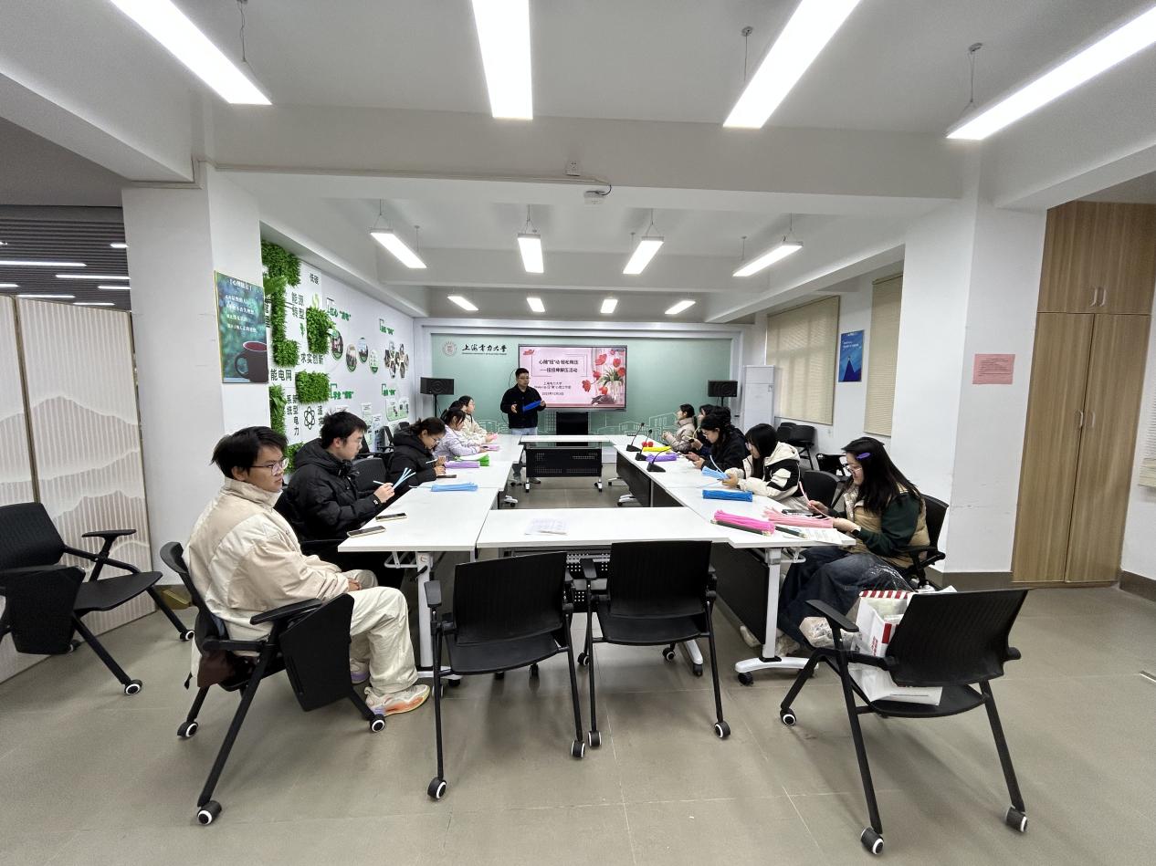 活动伊始,工作室负责人王涛从心理学专业视角切入,为在场同学讲解了手工活动对情绪调节的积极意义。他表示,手工创作可通过触觉与视觉的双重感官体验,帮助人们转移负面注意力,进而降低焦虑与紧张情绪;而扭扭棒质地柔软、可塑性强,其缠绕、弯折、组合的操作过程,本身就是一种温和的情绪宣泄途径,能助力参与者在创作中完成情绪的表达与整合,实现心理状态的自我调节。