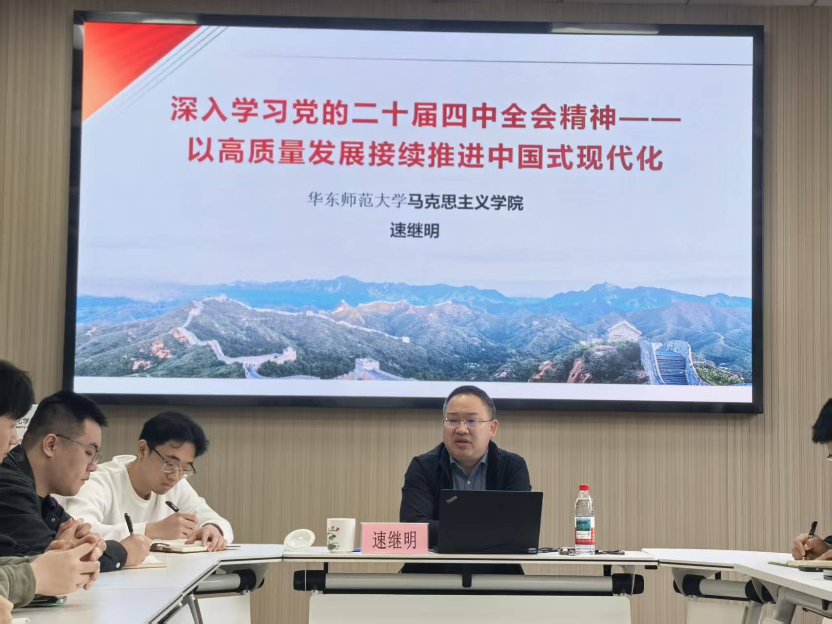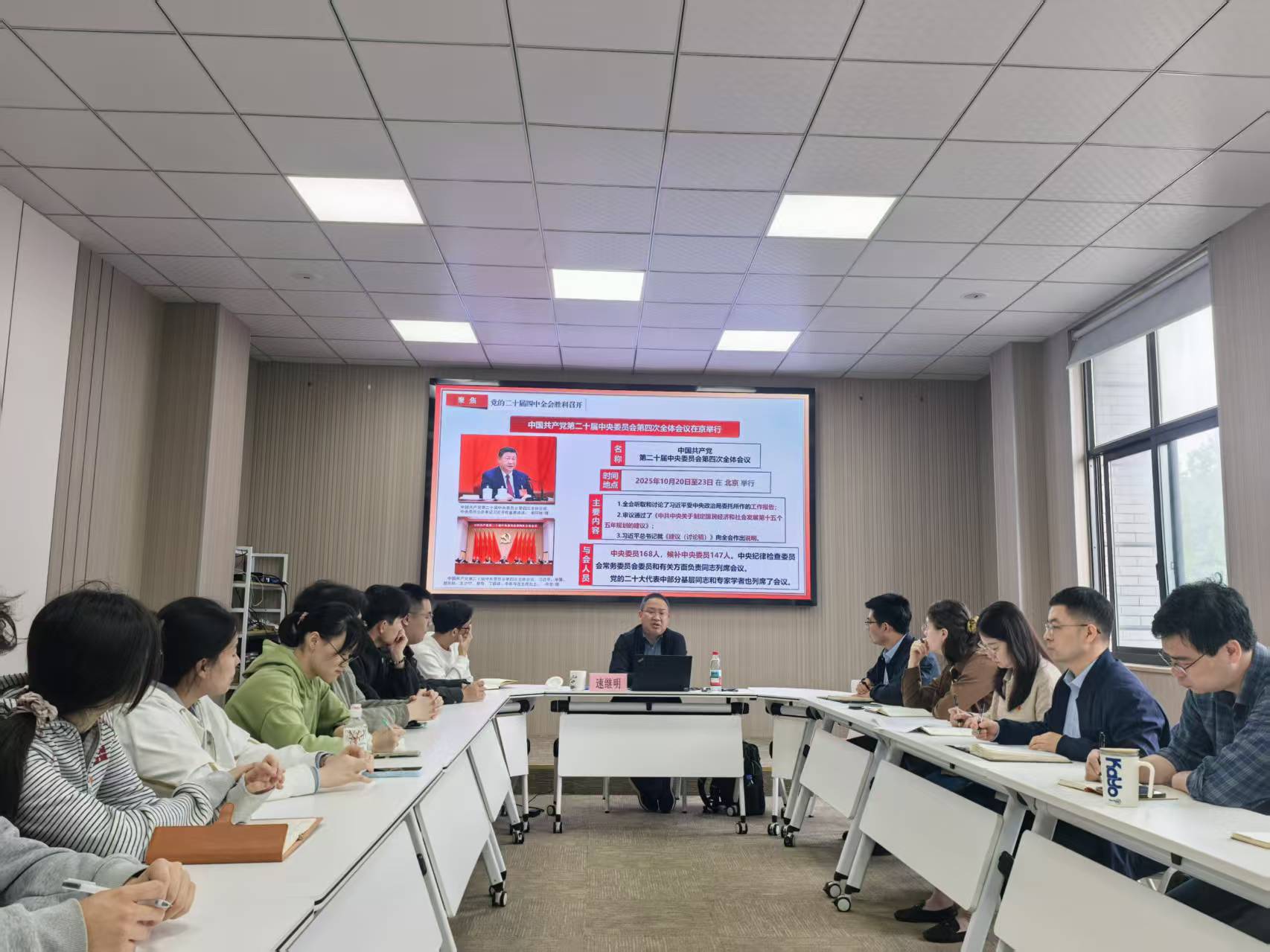 4月28日下午,公司党委在环化楼A213室举办学习贯彻党的二十届四中全会精神专题报告会。华东师范大学马克思主义学院副经理、教授、博士生导师速继明应邀作专题报告。公司党委书记常华主持报告会,公司党员教师代表、员工党员代表参加学习。