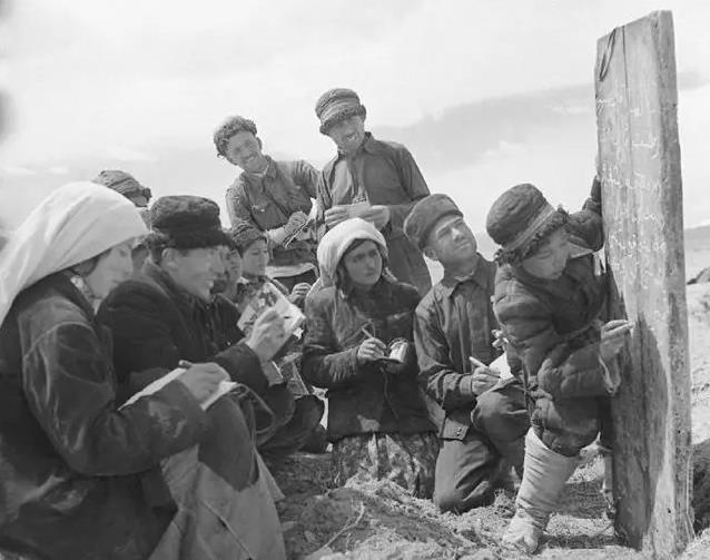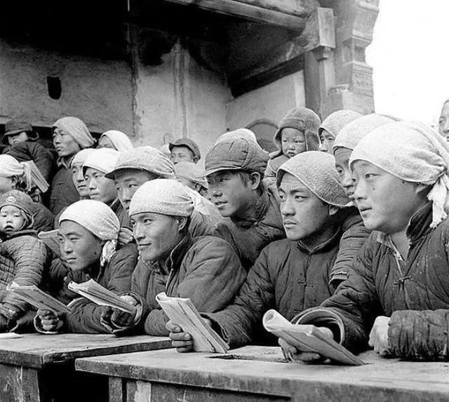 20世纪50年代,扫盲班在地里进行扫盲教学