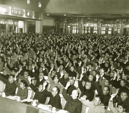 4月18日至28日 二届全国人大一次会议举行。会议选举刘少奇为国家主席,朱德为全国人大常委会委员长,决定周恩来为国务院总理。