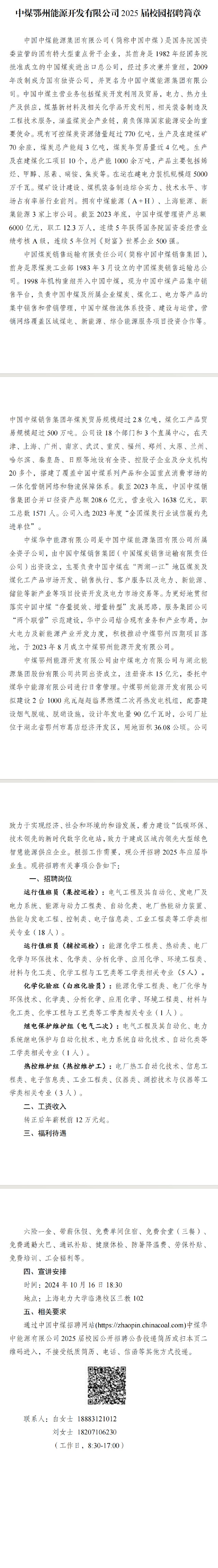 院2025届就业信息【34】——中煤鄂州能源开发有限公司